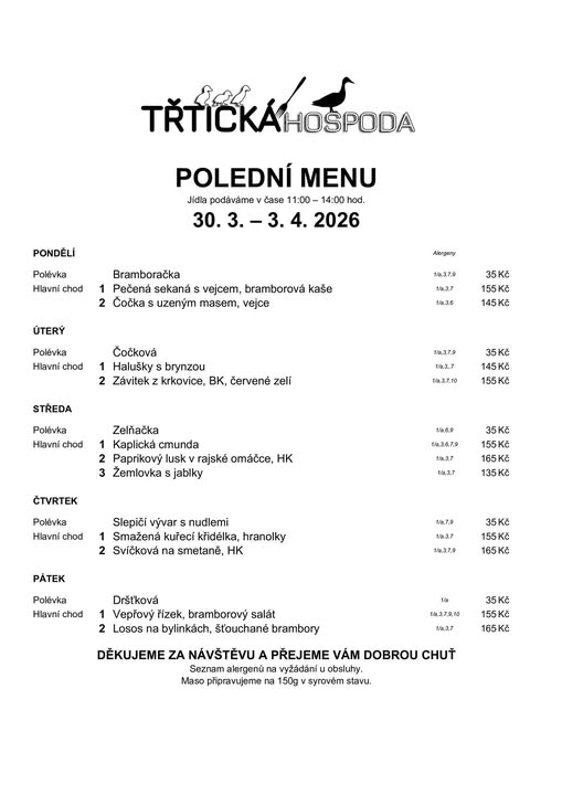 ≈ Polední menu 11:00 - 14:00 ≈ Přejeme vám dobrou chuť a těšíme se na vás :-)