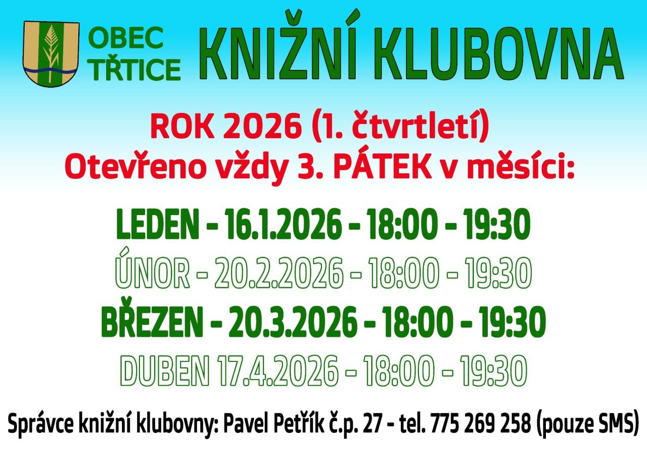 ≈ 17. 4. 2026 - pátek - OTEVŘENA Knižní klubovna ≈ 18:00 - 19:30 - kulturní sál - klubovna Cipísek